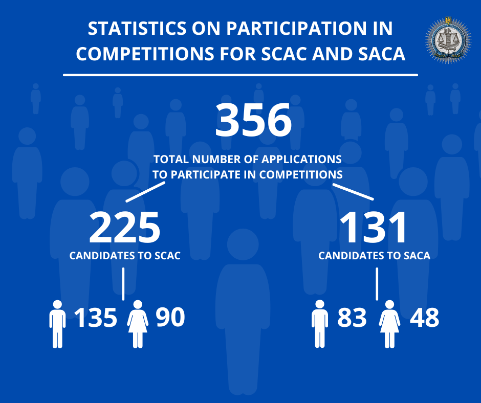 From December 1 to 23, 2025, the High Qualification Commission of Judges of Ukraine received documents from 225 persons who expressed their intention to participate in the competition for 17 vacant positions of judges of the Specialised Circuit Administrative Court, and from 131 persons for 10 vacant positions of judges of the Specialised Administrative Court of Appeal (announced on October 29, 2025).